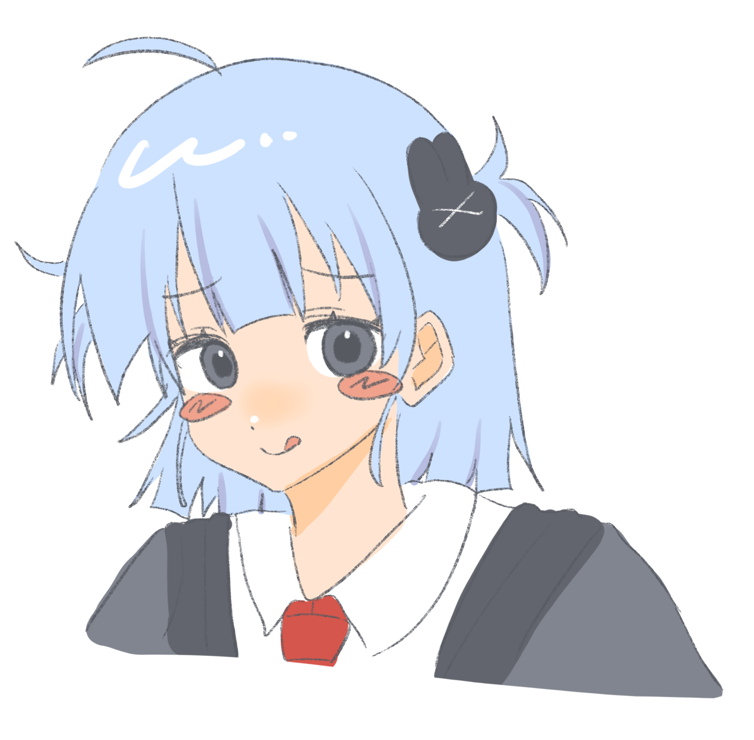 she is HUGE into oshikatsu but she keeps it a secret from most people. her oshi is a dark blue haired ikemen named salami.....